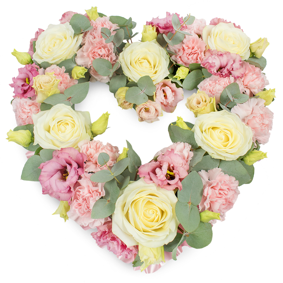 Celebrate your sentiments with our Luxurious Open Heart Flower Bouquet. Featuring exquisite white roses, pink carnations, pink lisianthus, and fragrant eucalyptus leaves, this bouquet is a testament to elegance and refinement.